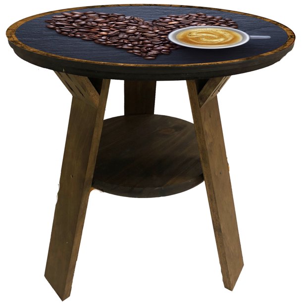 Heart Beans Cafe Coffee Table Round End Table Wine Bourbon Barrel With Shelf 22 Inches Tall Walmart Com